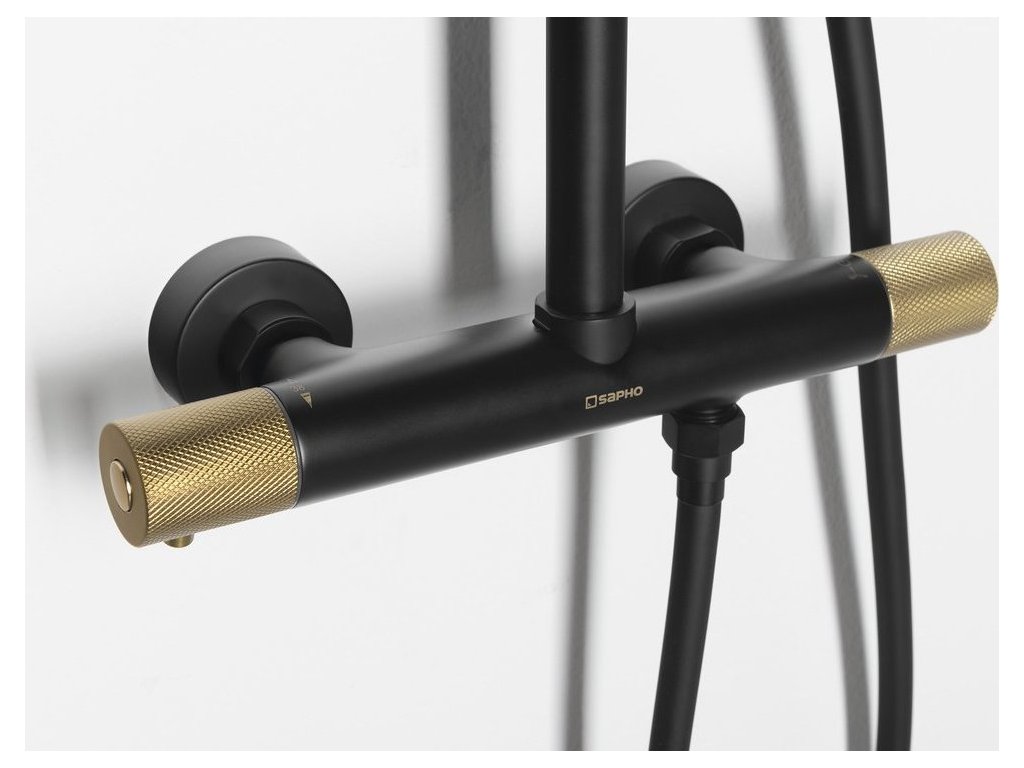 Sapho SOLARIS sprchový sloup s termostatickou baterií, černá/zlato mat WD139G