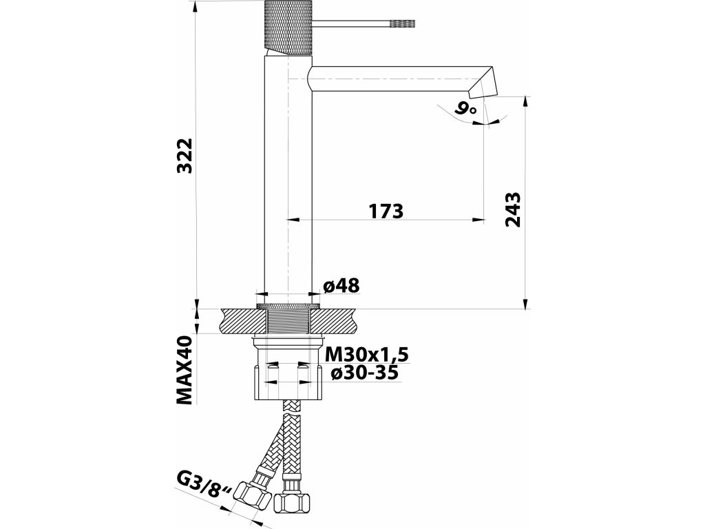 Sapho SOLARIS stojánková umyvadlová baterie vysoká, černá mat WD006B