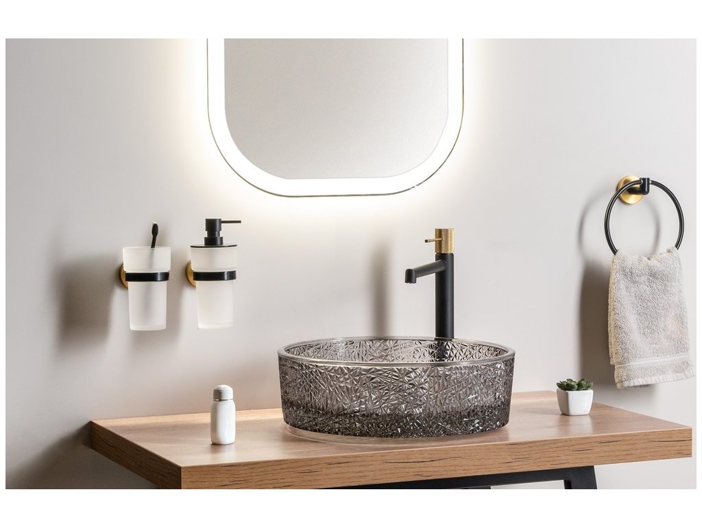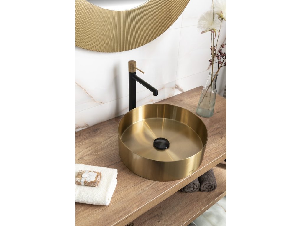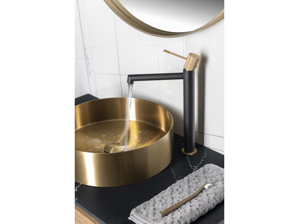 Sapho SOLARIS stojánková umyvadlová baterie vysoká, černá/zlato mat WD006G
