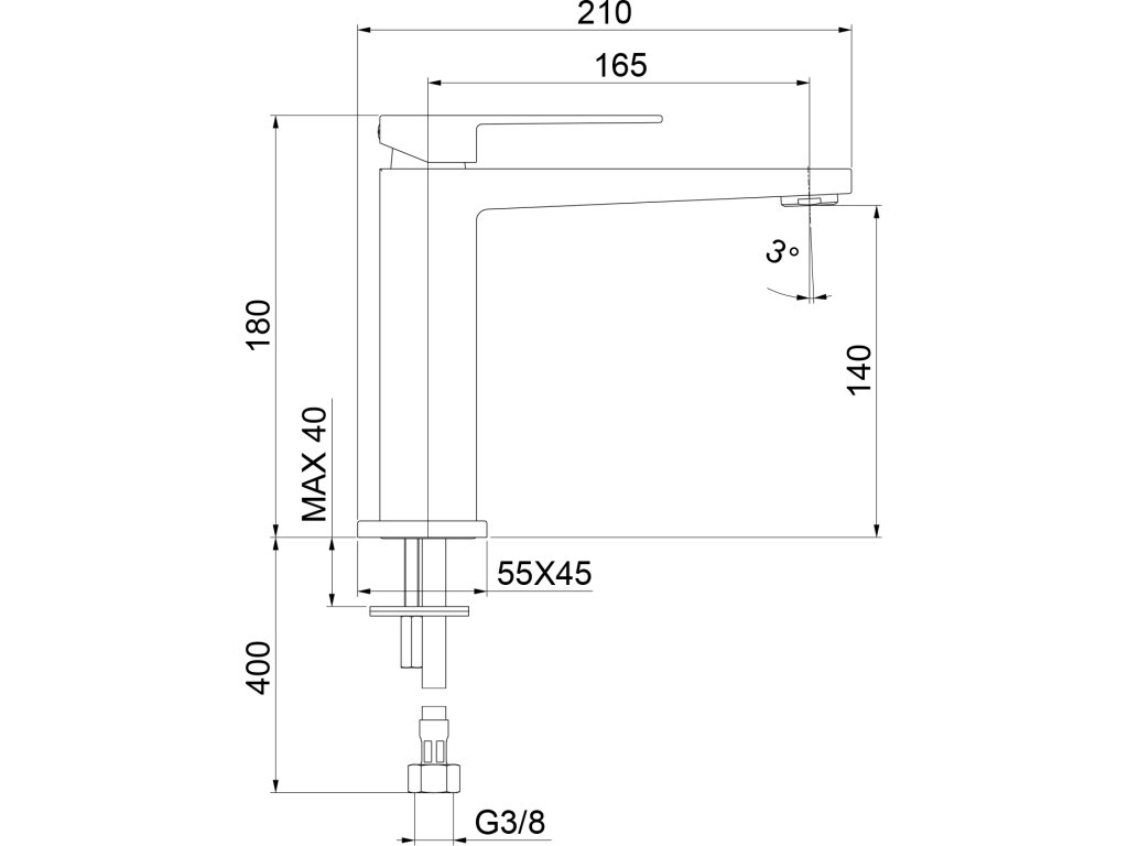 Sapho SPECTRE stojánková umyvadlová baterie, výška 180mm, černá mat 1102-74B