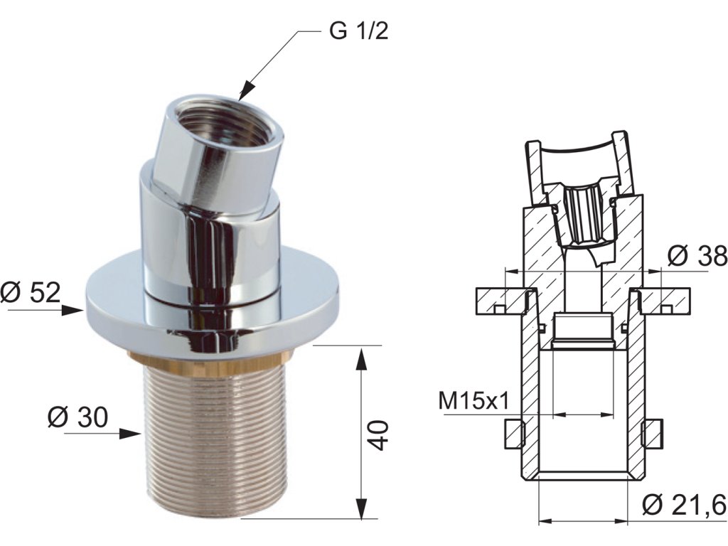 Sapho Sprchová průchodka na okraj vany s mezikusem F1/2"-M15x1, chrom 1205-41