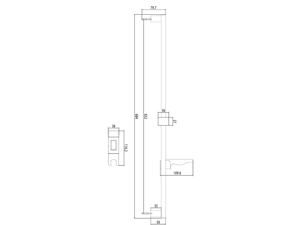 Sapho Sprchová tyč, posuvný držák, hranatá, 680mm, ABS/chrom 1206-09