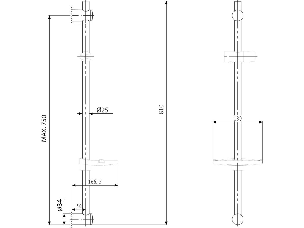 Sapho Sprchová tyč s mýdlenkou, posuvný držák, kulatá, 810mm, chrom 1206-06