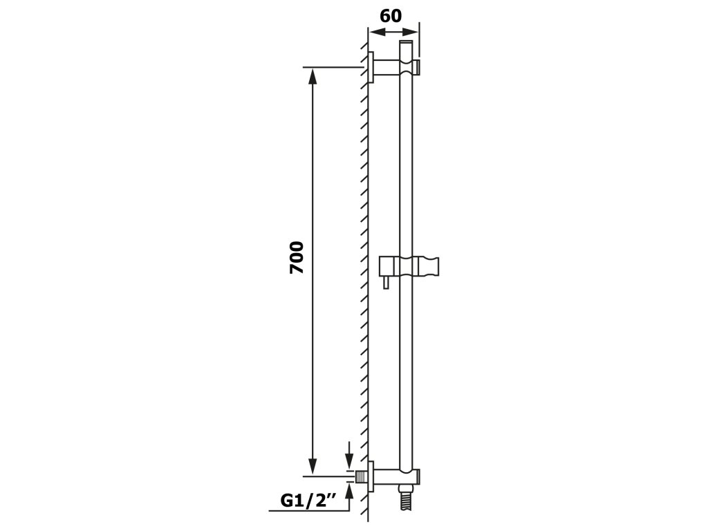 Sapho Sprchová tyč s vývodem vody, posuvný držák, kulatá, 720mm, chrom 1202-08