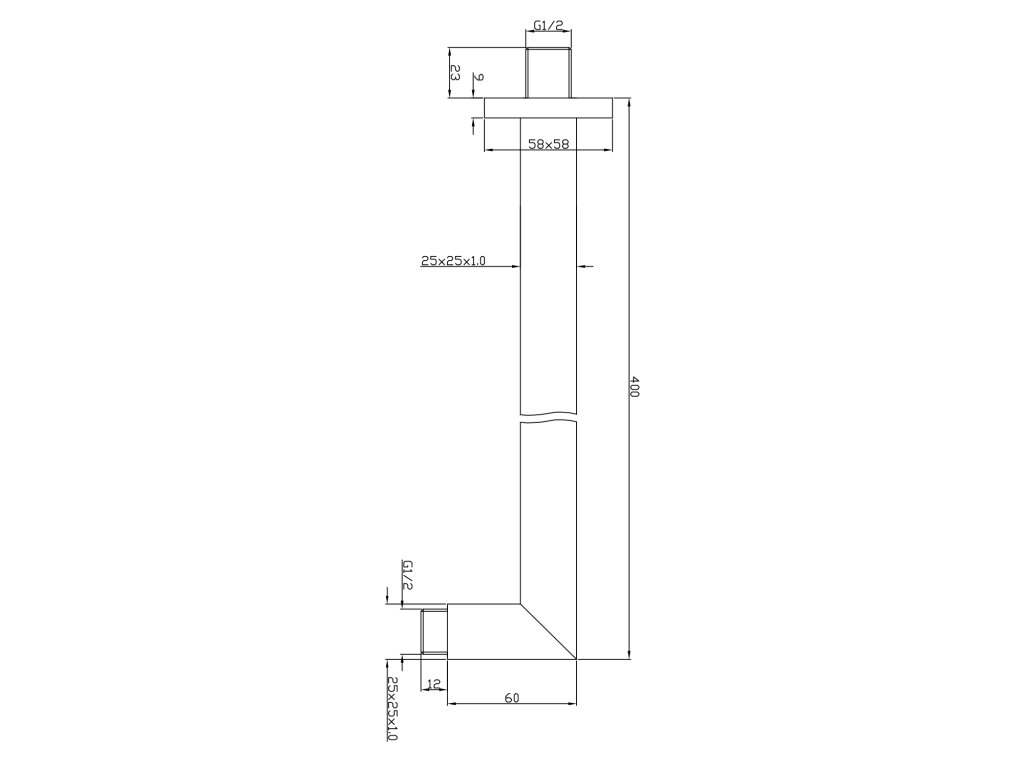 Sapho Sprchové ramínko hranaté nízké, 400mm, chrom SL400