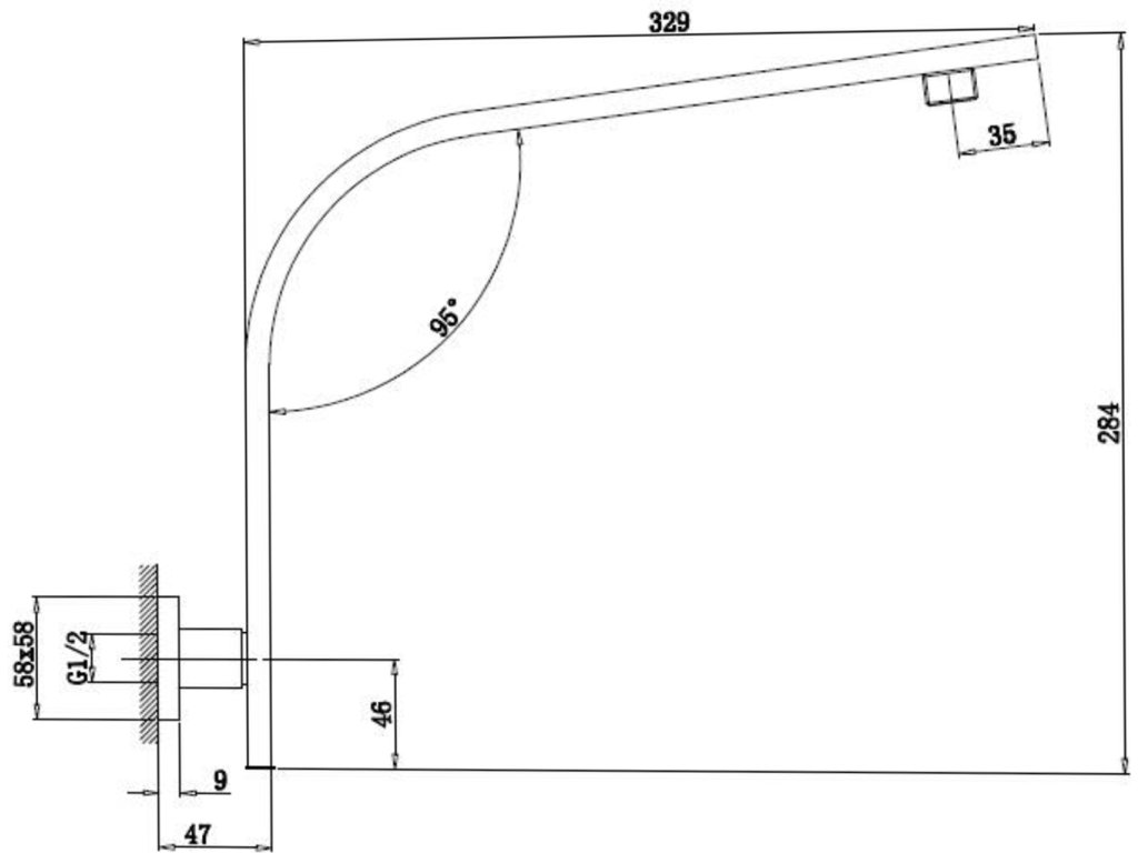 Sapho Sprchové ramínko hranaté zvýšené, 330mm, chrom 9002