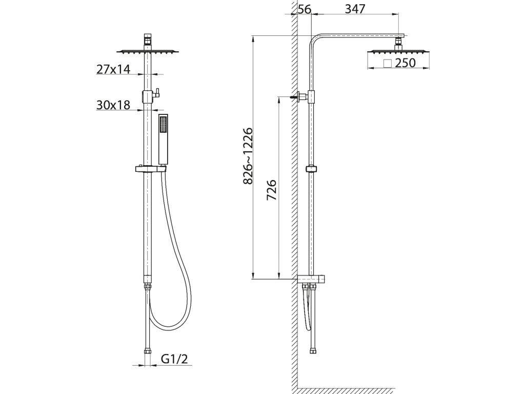Sapho Sprchový sloup k napojení na baterii, hlavová, ruční sprcha, chrom 1202-29