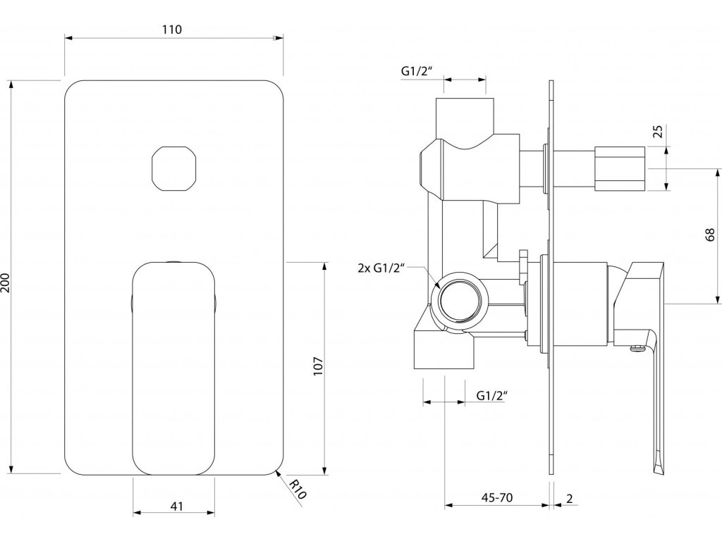 Sapho SPY podomítková sprchová baterie, 2 výstupy, otočný přepínač, chrom PY43