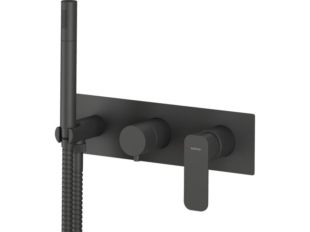 Sapho SPY podomítková sprchová/vanová baterie s ruční sprchou, 2 výstupy, černá mat PY52/15