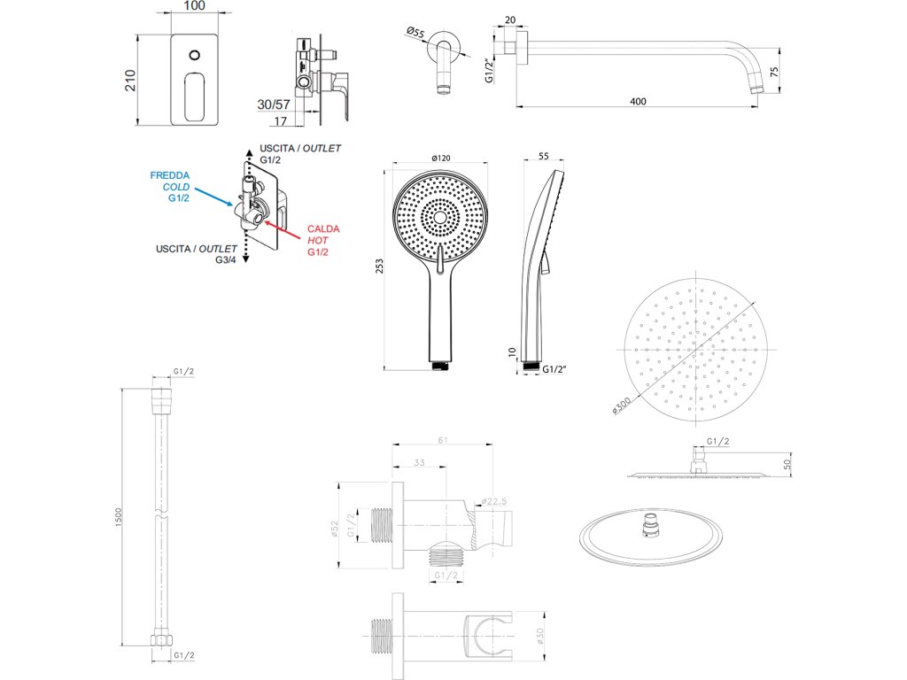 Funkce sprchy: | Déšť, Masáž, Déšť/Masáž |