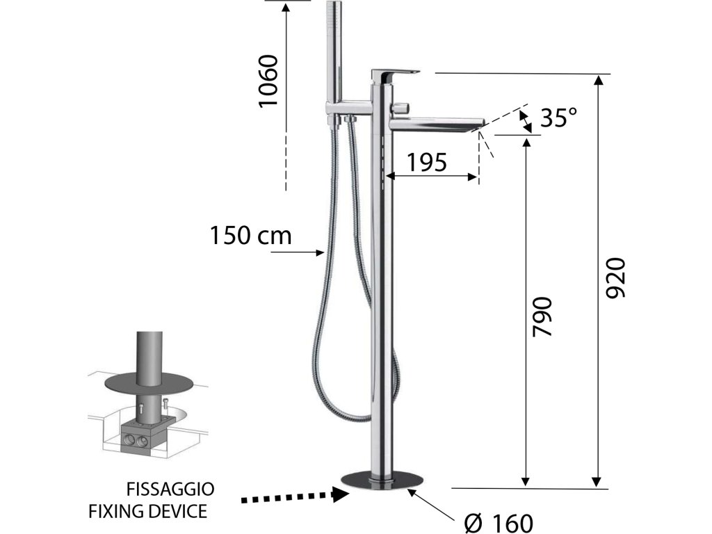 Sapho SPY vanová baterie s připojením do podlahy, zlato PY21/17