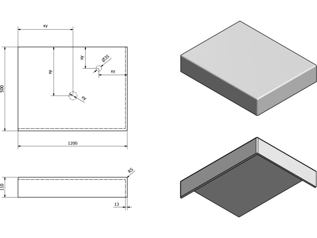 - Možnost dodání s otvory pro baterii a odpad dle výkresu (lze vrtat i v místě instalace)