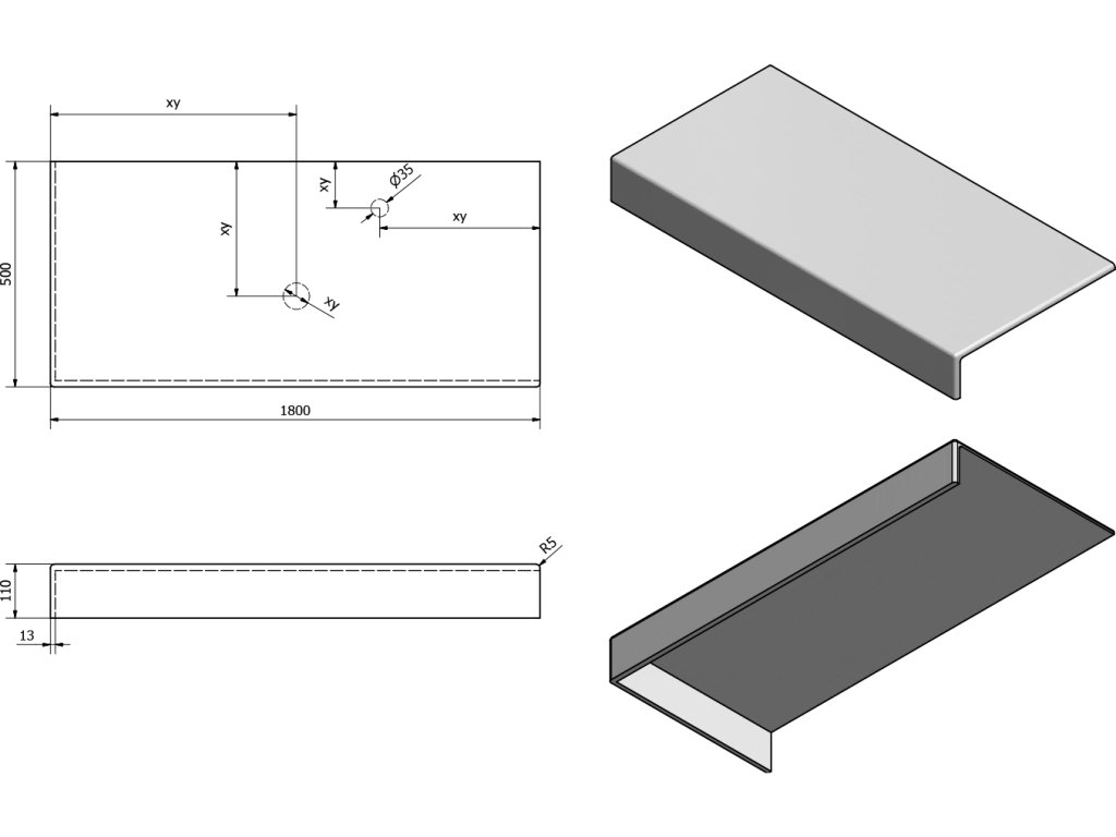 - Možnost dodání s otvory pro baterii a odpad dle výkresu (lze vrtat i v místě instalace)