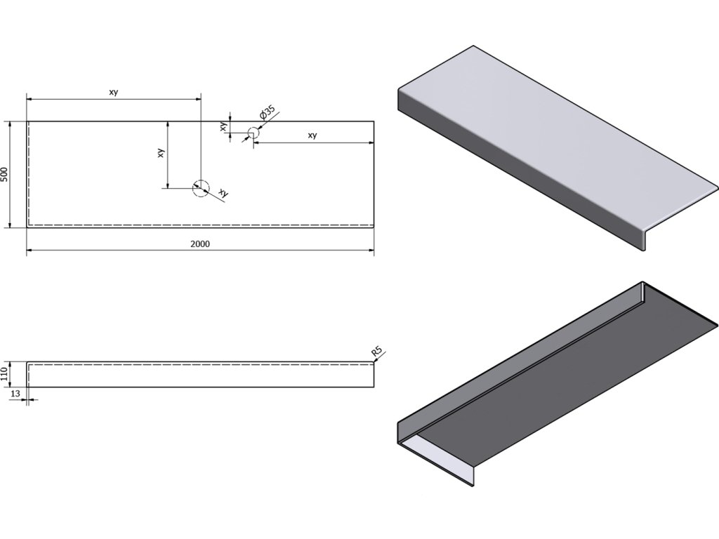 - Možnost dodání s otvory pro baterii a odpad dle výkresu (lze vrtat i v místě instalace)