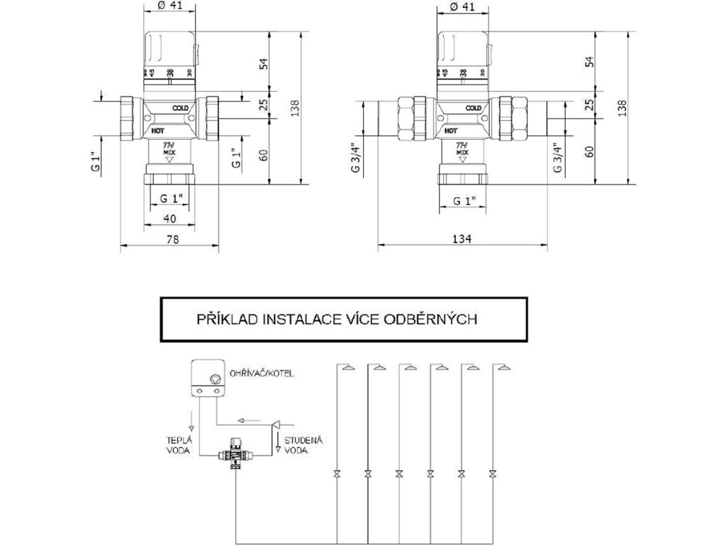 - Vstup teplá: F3/4" se zpětnou klapkou