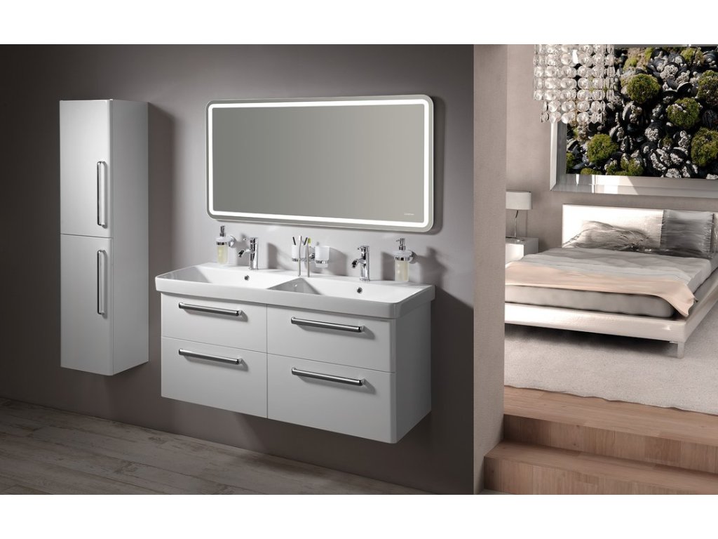 Moderní linie skříněk řady THEIA ladí s keramickými umyvadly THALIE vytváří spolu zajímavý celek. Skříňky a zásuvky jsou opatřeny elegantní úchytkou. Zásuvky jsou vybaveny značkovými pojezdy BLUM® s doživotní zárukou, dvířka jsou vybavena panty s tlumeným dovřením. Na výběr je zásuvkové nebo dvířkové provedení umyvadlových skříněk v lesklé bílé a ve vybraných dekorech lamina.