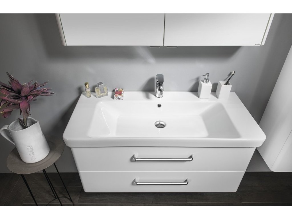 Moderní linie skříněk řady THEIA ladí s keramickými umyvadly THALIE vytváří spolu zajímavý celek. Skříňky a zásuvky jsou opatřeny elegantní úchytkou. Zásuvky jsou vybaveny značkovými pojezdy BLUM® s doživotní zárukou, dvířka jsou vybavena panty s tlumeným dovřením. Na výběr je zásuvkové nebo dvířkové provedení umyvadlových skříněk v lesklé bílé a ve vybraných dekorech lamina.