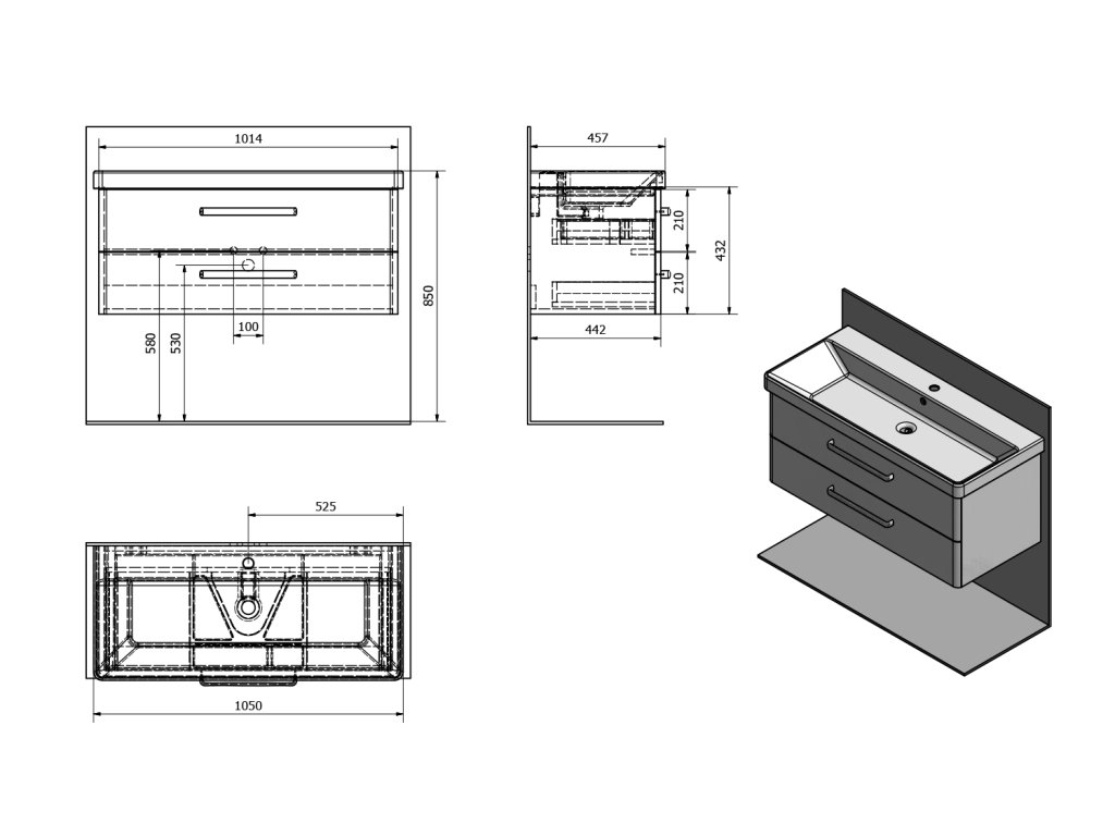 Sapho THEIA umyvadlová skříňka 101, 4x43, 5x44, 2cm, 2xzásuvka, bílá TH105-3030