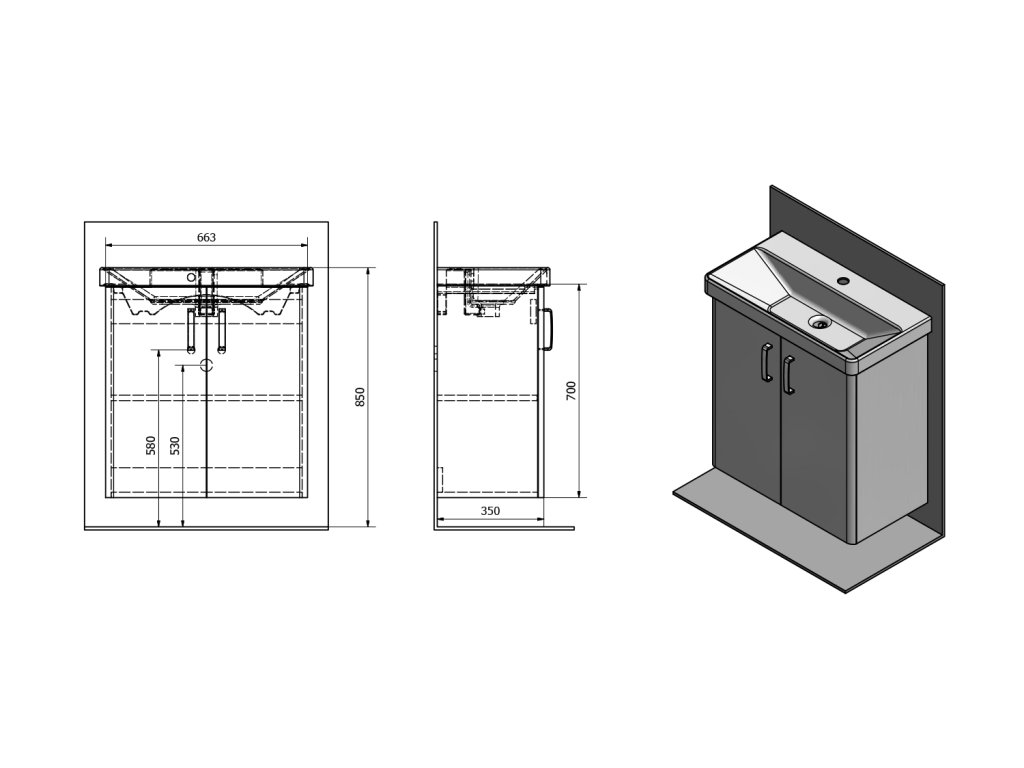 Sapho THEIA umyvadlová skříňka 66, 3x70x35cm, 2x dvířka, bílá TH072-3030