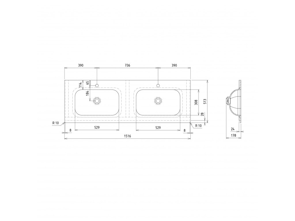Sapho TREOS dvojumyvadlo 151, 6x51, 3 cm, rockstone, bílá mat TS152-0101
