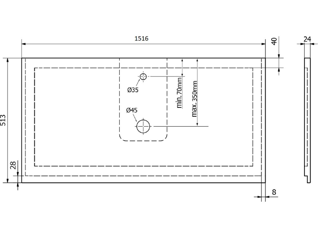 Soubory ke stažení:- Otvor pro baterii a výpust lze vyvrtat v místě instalace nebo dle výkresu ve výrobě
