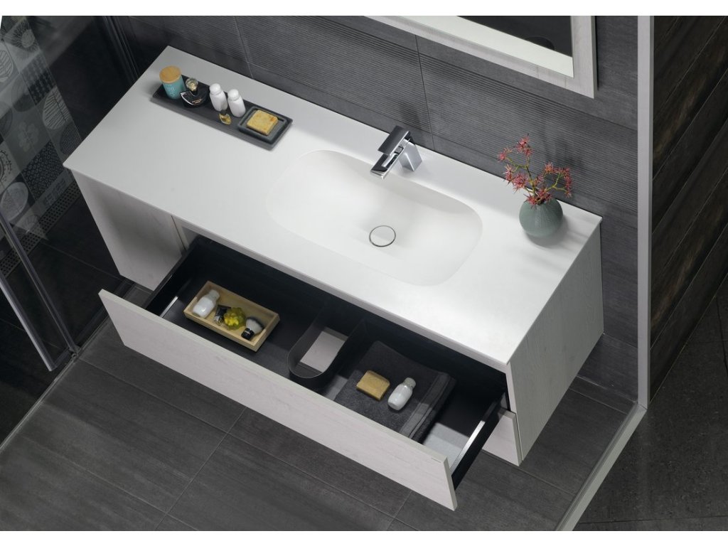Nábytek nabízíme standardně ve 4 barevných variantách. Na výběr jsou zápustná umyvadla TREOS, polozápustná umyvadla BRAHEA nebo při použití desky umyvadla na postavení. Sérii lze doplnit o doplňkové skříňky ESPACE se závěsy BLUM a systémem TIP-ON. Do některých skříněk ESPACE lze dokoupit pratelný látkový prádelní koš na suchý zip nebo vnitřní zásuvku.