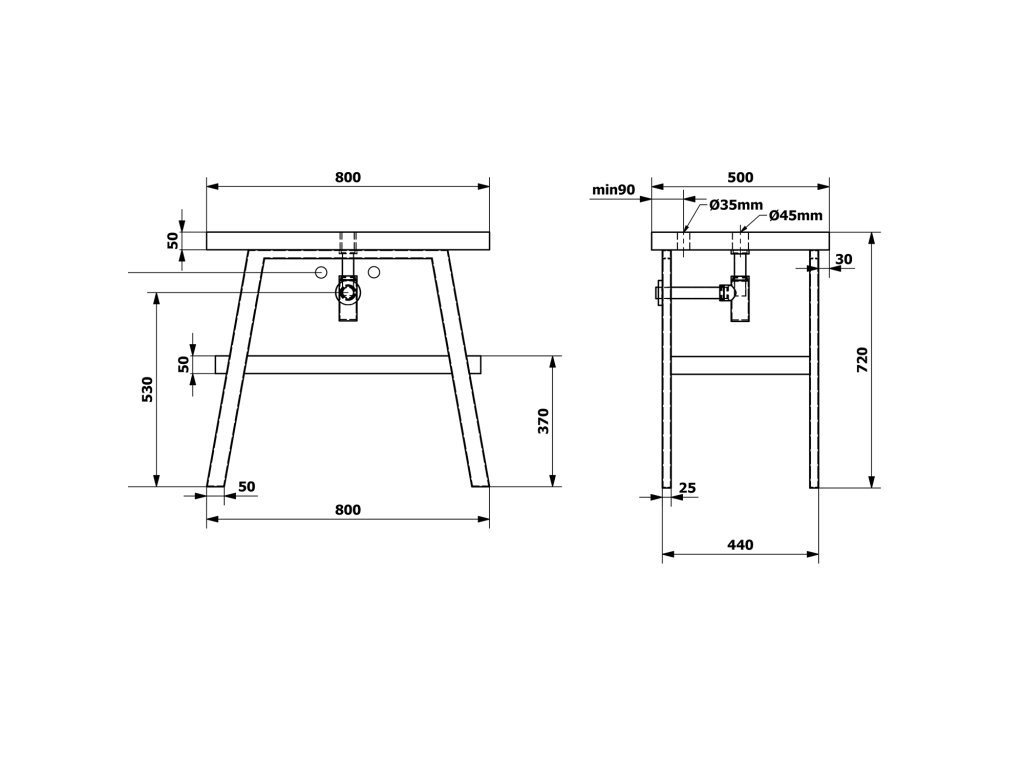 Stolek se skládá z ocelové podpěry TWIGA, horní desky AVICE o hloubce 50 cm a spodní desky (police) AVICE o hloubce 39 cm. Stolky o rozměrech 110 až 130 cm lze doplnit o zásuvku.
