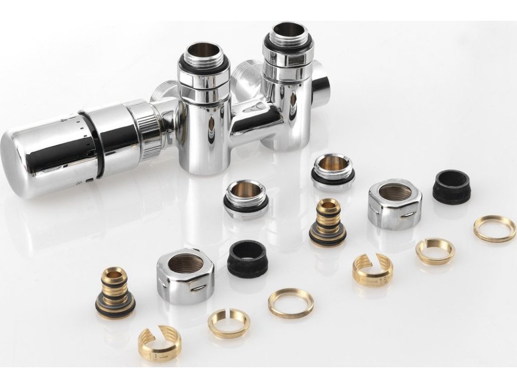 Námi nabízené připojovací ventily jsou dodávány včetně svěrného šroubení na nejběžnější potrubí (Ø15 mm Cu a Ø16 mm Alupex), pro dopojení tak není třeba nic dokupovat. Pro zakrytí přívodních trubek a otvorů ve zdi doporučujeme přikoupit krycí rozety.
