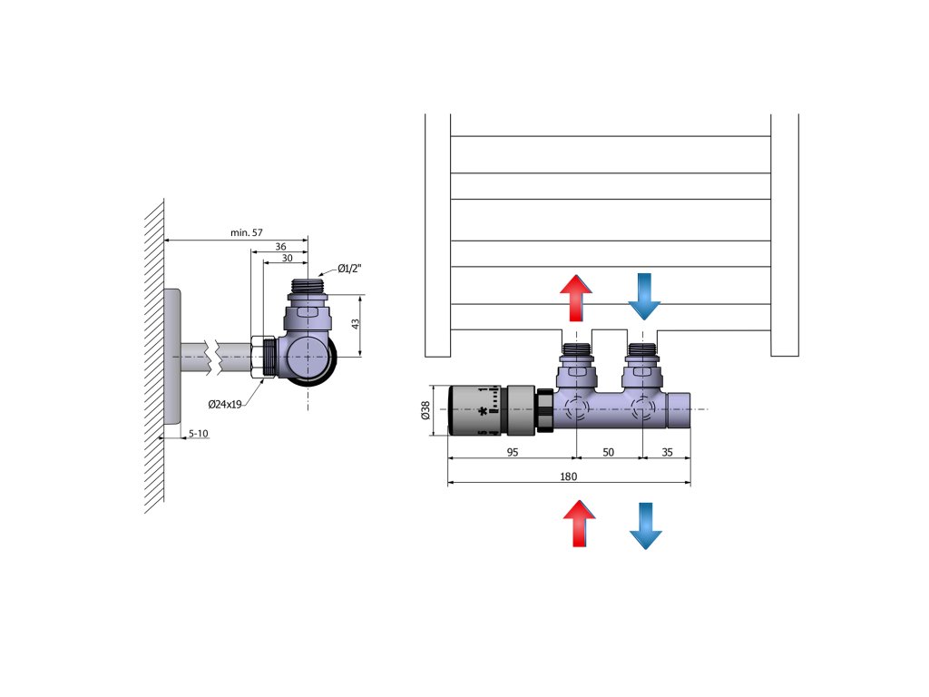V případě ústředního vytápění je důležitý výběr připojovací sady ventilů. Na výběr je použití ručního ventilu nebo ventilu s termostatickou hlavicí.