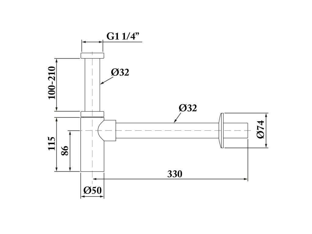 Sapho Umyvadlový sifon 5/4", odpad 32mm, kulatý, chrom SI511