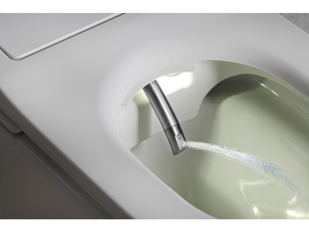 Závěsná toaleta VeenClean nabízí nový komfort hygieny. Po použití toalety se na povel vysune oplachová tryska s možností nastavení tlaku a teploty vody.