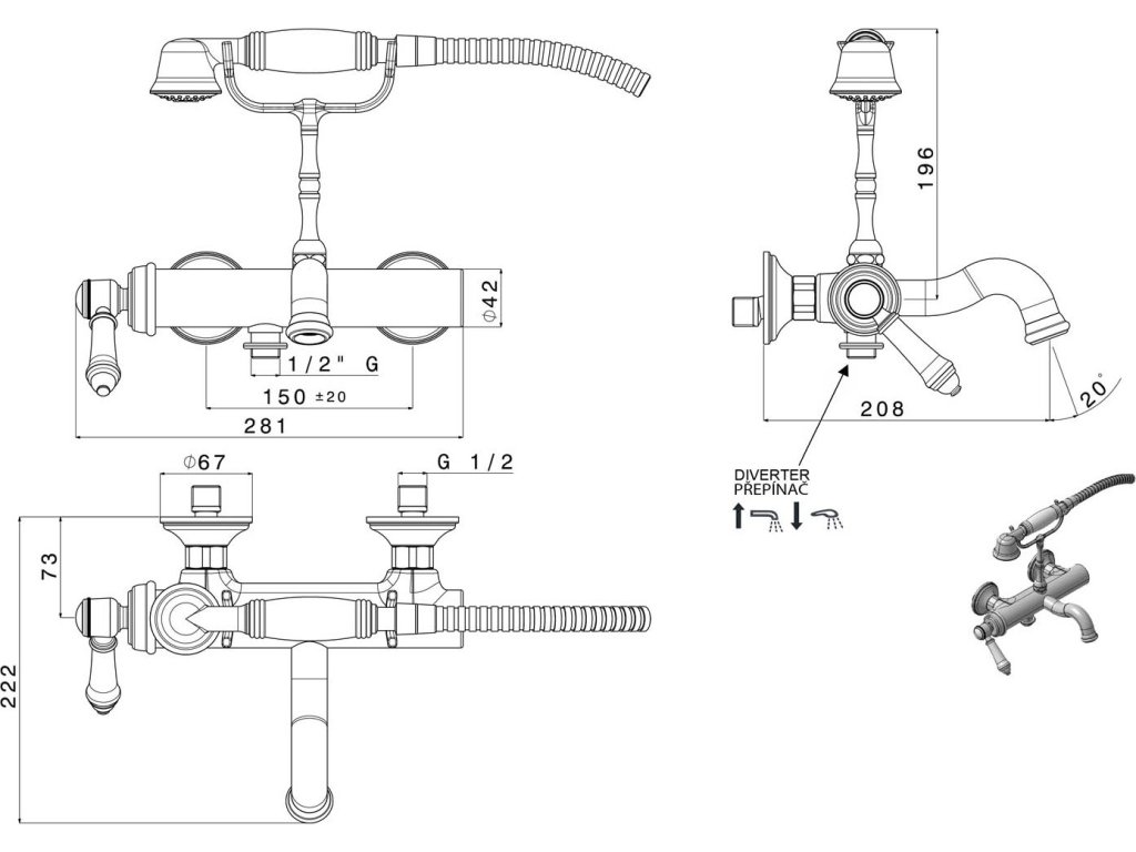 Sapho VIENNA nástěnná vanová baterie kompletní, chrom VO010