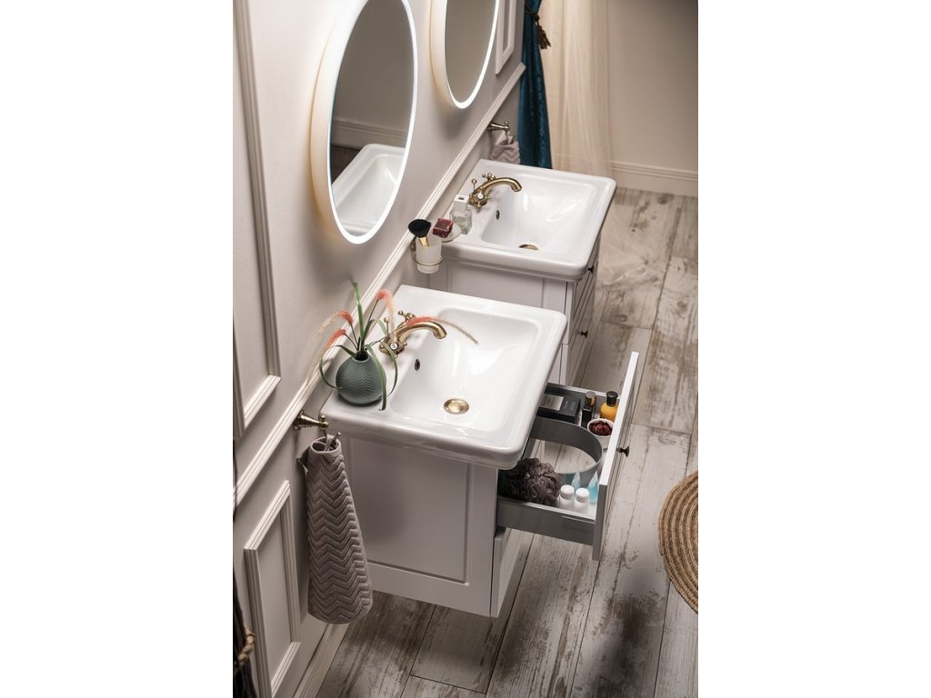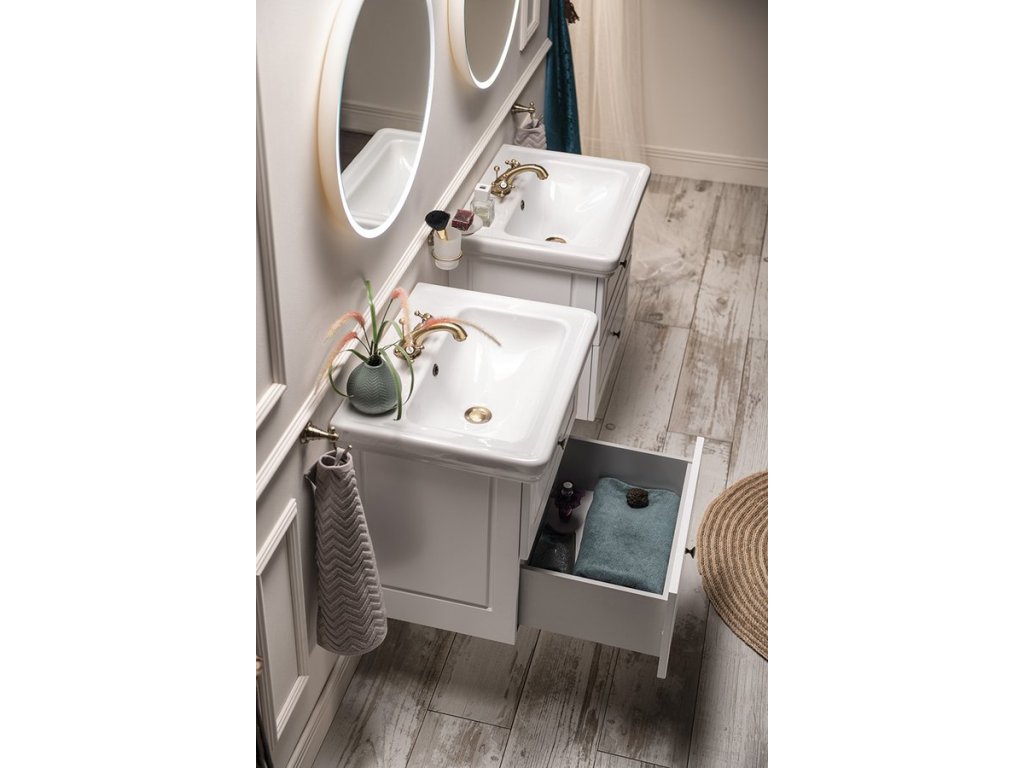 Keramická umyvadla od italského výrobce GSI k těmto skříňkám jsou nabízena v šířkách 60 až 125 cm.