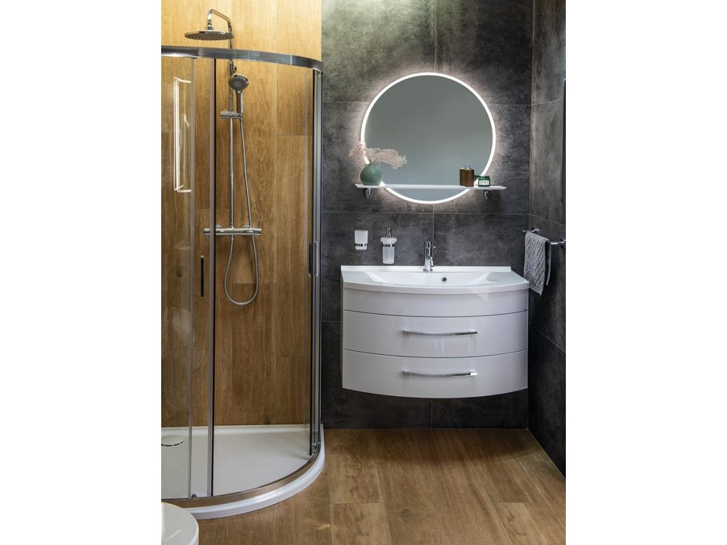 Sapho VISO kulaté zrcadlo s LED osvětlením a policí ø 80cm, bílá mat VS080-01
