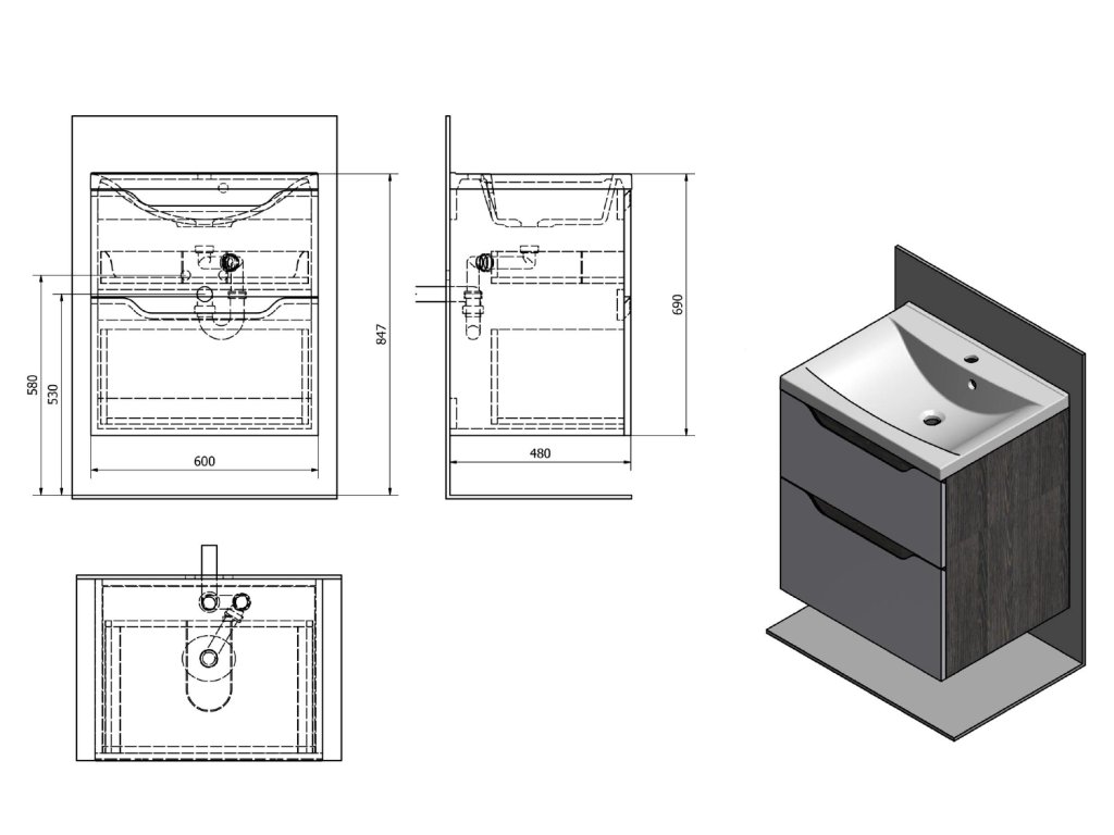 Sapho WAVE umyvadlová skříňka 60x65x47, 8cm, bílá/dub stříbrný WA060-3011