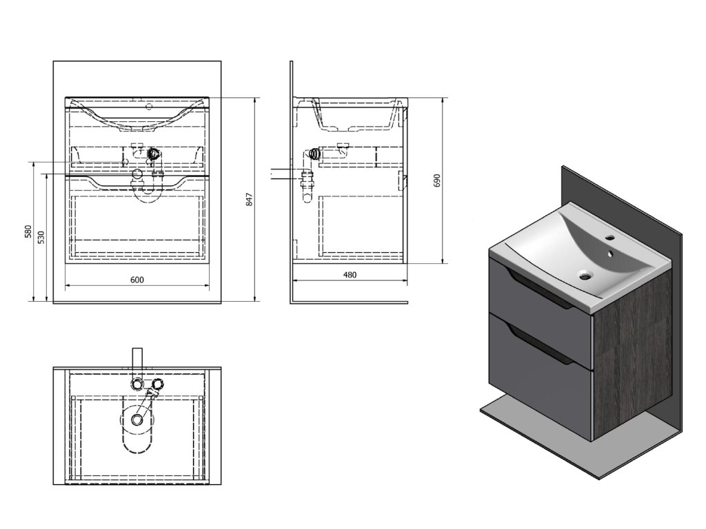 Sapho WAVE umyvadlová skříňka 60x65x47, 8cm, bílá/mali wenge WA060-3021