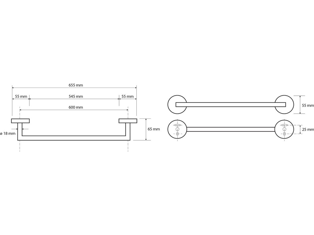 Sapho X-ROUND BLACK držák ručníků 600mm, černá mat XR404B