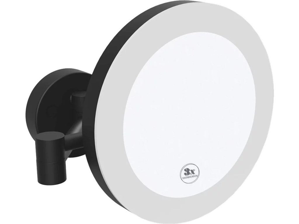 Sapho X-ROUND BLACK kosmetické zrcátko závěsné LED, Ø 200mm, černá mat XR016B