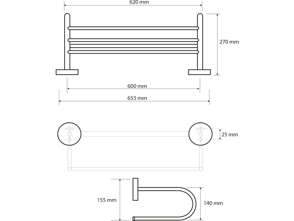 Sapho X-ROUND E polička na ručníky U typ, 600mm, chrom XR418