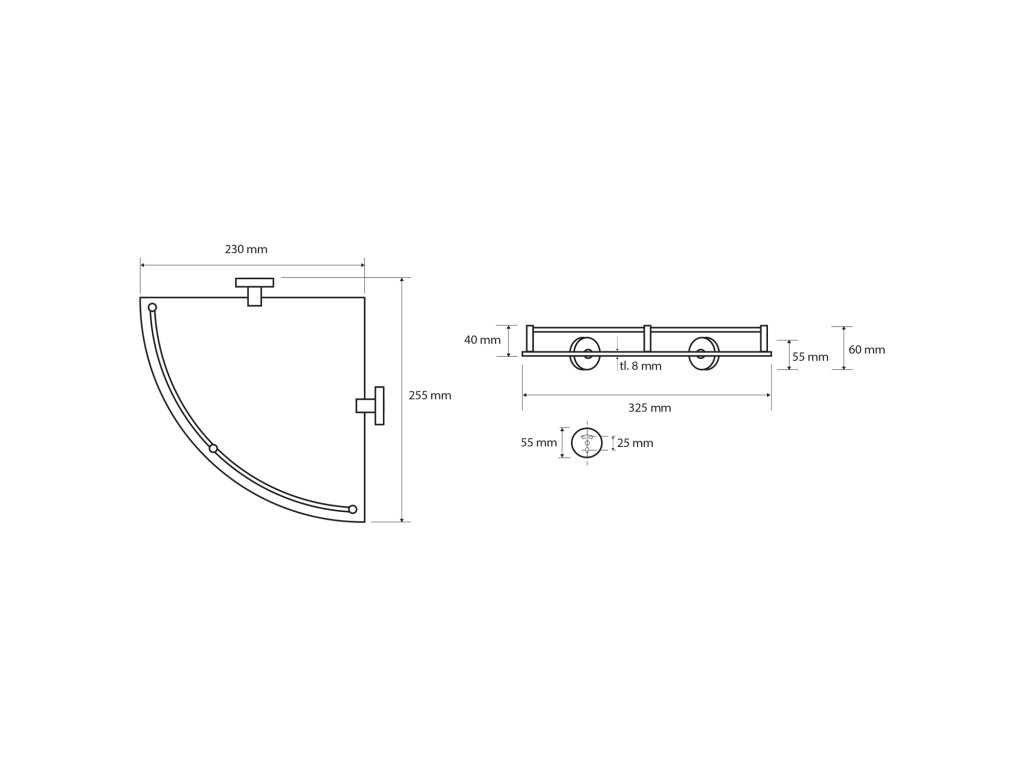 Sapho X-ROUND E skleněná polička rohová s hrazdou 255x60x230mm, chrom XR605