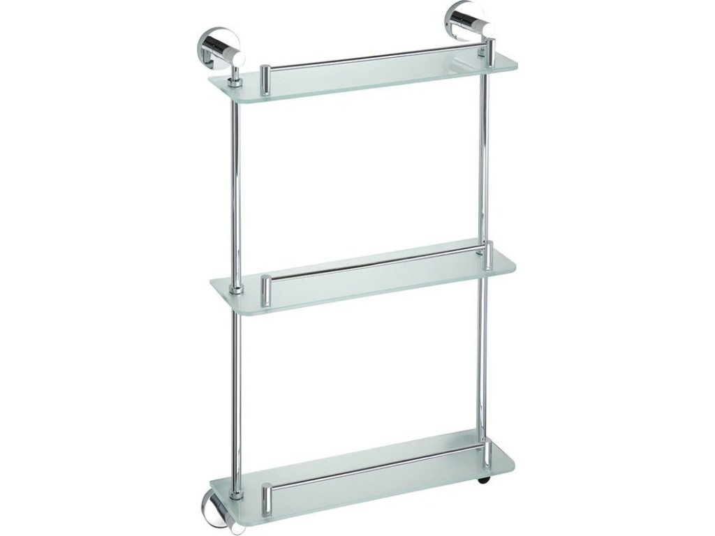 Sapho X-ROUND E skleněná polička trojitá s hrazdou 380x675x130mm, chrom XR608