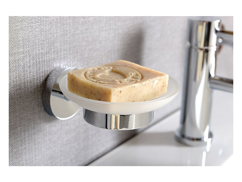 Sapho X-ROUND mýdlenka, mléčné sklo, chrom XR803