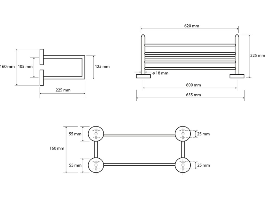 Sapho X-ROUND polička na ručníky dvojitá s hrazdou 600x160x225mm, chrom XR416
