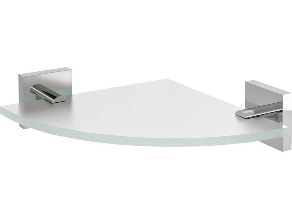 Sapho X-SQUARE skleněná police rohová, čtvrtkruhová 200x200mm, chrom/mléčné sklo XQ009-01