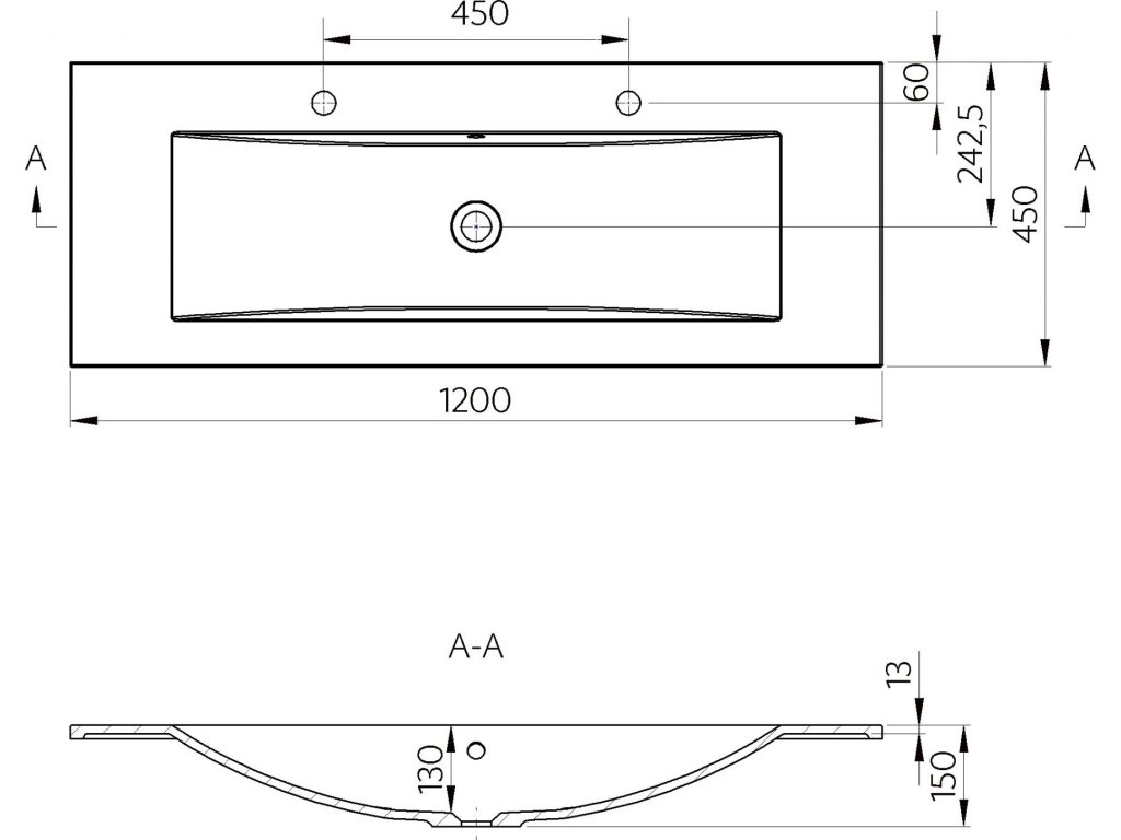 Sapho YUKON dvojumyvadlo, litý mramor, 120x45cm, bílá YU122