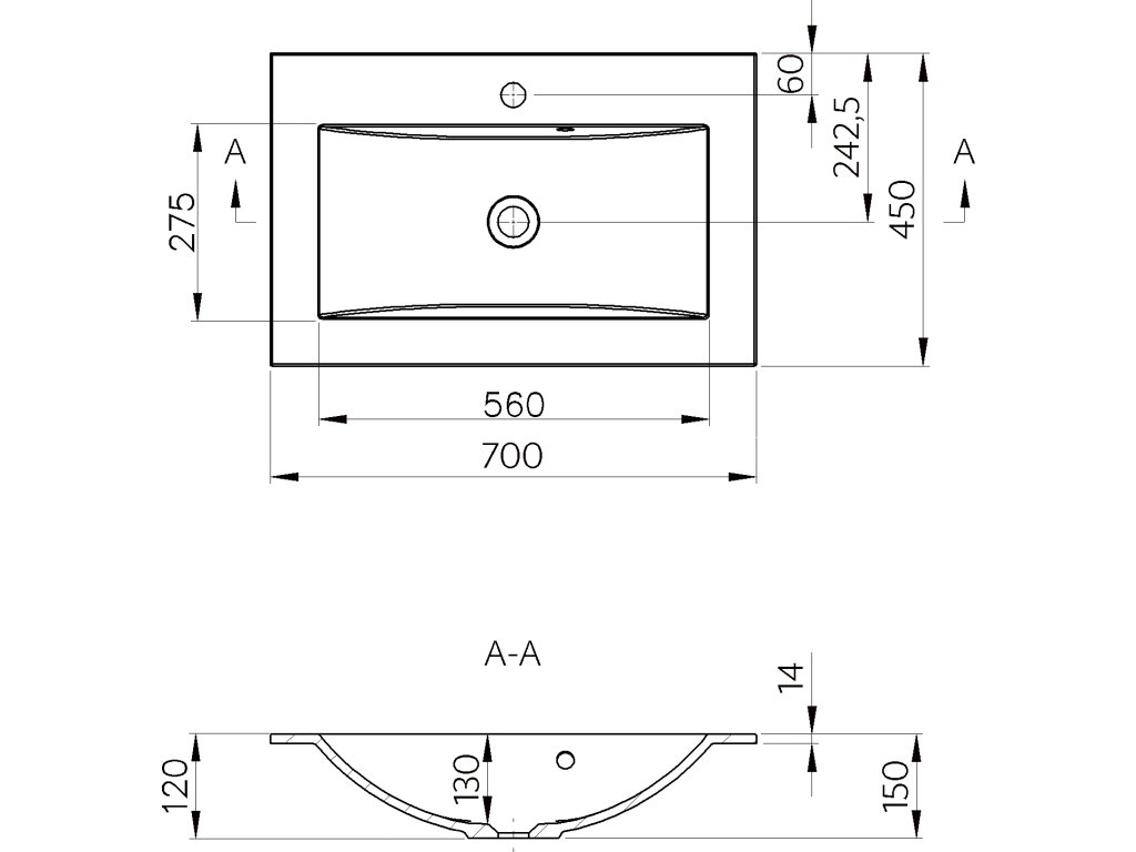 Sapho YUKON umyvadlo, litý mramor, 70x45cm, bílá YU070