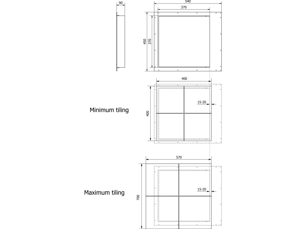Balení obsahuje: dvířka v rámu, instalační prvky, ukončovací PVC lišta 8 a 10 mm.