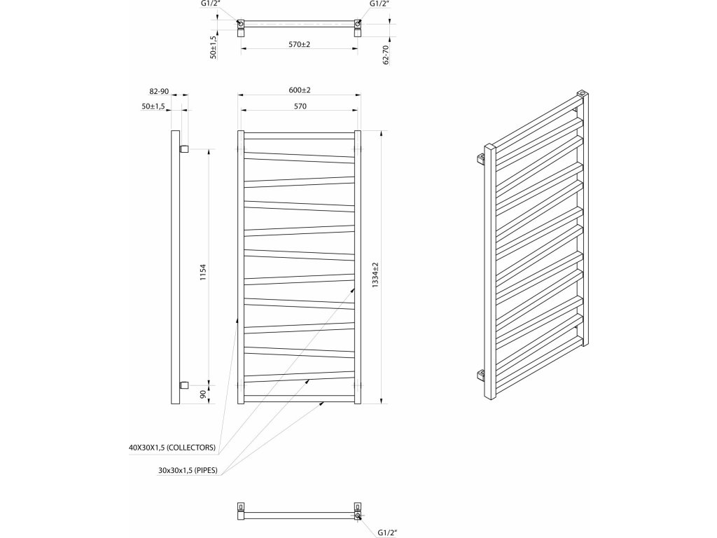 Sapho ZIG otopné těleso 600x1334mm, černá mat ZG613B