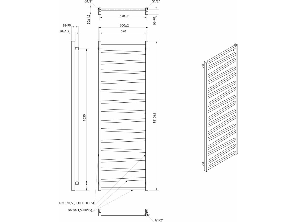 Sapho ZIG otopné těleso 600x1810 mm, černá mat ZG619B