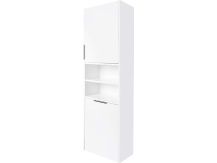 Leny, koupelnová skříňka vysoká, 330x1700x253 mm, závěsná, s policemi, pravé otevírání, bílá lesk.